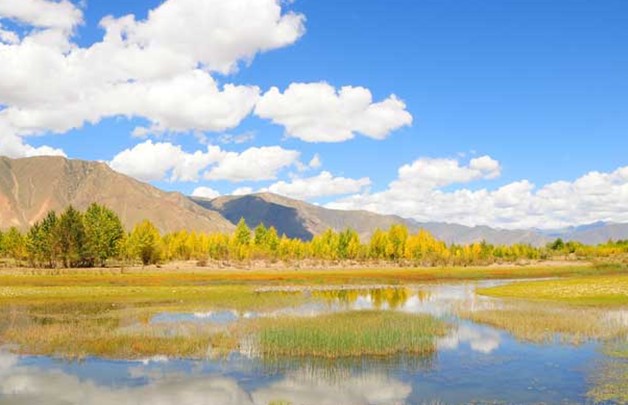 思金拉措,藏語即:具有威力的神湖,當地群眾稱為“財主百龍之王”居住的神湖。位于墨竹工卡縣日多鄉東南邊,距川藏公路(318國道)約6公里,距縣城66公里,距拉薩市區124公里,海拔4500米。地形猶如聚寶盤,四周群峰簇擁。藥材植物就多達幾十種,其中有:雪蓮花、金腰子、冬蟲夏草、黃連花等珍貴的上等藥材。山間隨處可見雪雞、雉鶉、巖羊、鹿、高山嶺羊、香獐等,有時還會看見狼、馬熊、豹等野獸。