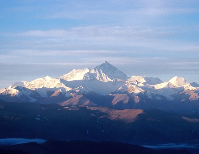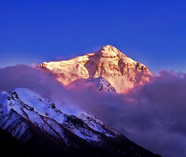 珠穆朗瑪峰是世界最高大的山系喜馬拉雅山的主峰,海拔8,844.43m,為世界第一高峰。珠穆朗瑪為藏語的音譯,意為“女神第三”。山體呈金字塔狀,山上冰川面積達1萬平方公里,最長之冰川達26km。山峰上部終年為冰雪覆蓋,地形陡峭高峻。是世界登山運動矚目和向往的地方。山間有孔雀、長臂猿、藏熊、雪豹、藏羚等珍禽奇獸及多種礦藏。