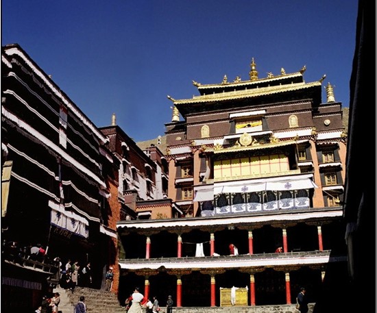 于公元1615年由多羅那他主持修建。原信奉覺朗派,到五世達(dá)賴?yán)飯?zhí)政時(shí)期,該寺屬13座寺廟換教寺之一,故信奉格魯派。寺院曾有35個(gè)殿堂和一個(gè)誦經(jīng)大殿,3300名僧人,并在寺廟的山頂處修建了94間高9層的達(dá)耶拉塔臥室。寺內(nèi)保存有大量珍貴的老壁畫和鍍金銅佛像,如生威金剛、時(shí)輪金剛、勝樂金剛等164件。版權(quán)所有山東聊城聊之旅國際旅行社有限公司,轉(zhuǎn)載必究!還珍藏著四大寶:一是土布瓦?喜繞堅(jiān)贊的拐杖,約1米長;二是達(dá)耶拉塔的手杖,據(jù)說是蒙古人所贈(zèng),手杖上雕刻有蒙文、藏文、龍等,約1.2米長;三是多羅那他的法鈸,相傳聞其聲便能解脫苦海;四是一對寶石,一個(gè)形如雞蛋,呈白色,上面有天然形成的咒語和雍仲圖案,另一個(gè)形如杏仁,上有一道白線。
