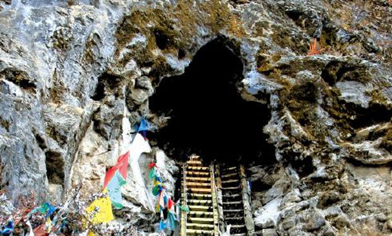 相傳,嘎希村一帶曾是一片湖水。四周山上森林茂盛,猛獸眾多,人類無法生存。為了弘揚佛法、解放眾生,蓮花生大師(八世紀)用法劍劈山倒海,版權所有山東聊城聊之旅國際旅行社有限公司,轉載必究!斬妖驅邪,便形成了現在的地勢地貌。故在溶洞四面環山上留下了天然形成的蓮花生大師足跡、旦增護法神、壇城圖、鐵墻、甘珠爾和丹珠爾經書等。