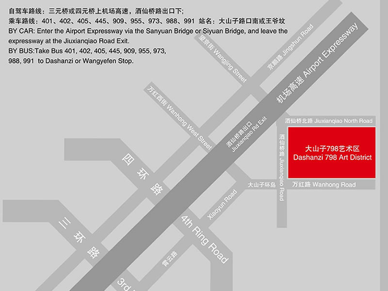 要改進798藝術區目前可進入性差的現狀,增加到798藝術區的公共交通。建議位于798藝術區二號和四號門的公共汽車站名改為“798藝術區”或“大山子藝術區”,以強化人們對798藝術區的認知程度,讓更多的人知道798藝術區的位置。增加北京各區縣抵達798藝術區的專線車和過路車。另外,在新出版的北京交通地圖、旅游地圖和北京街頭設立的電子查詢地圖中,標明798藝術區的方位。在介紹和宣傳北京的文化、旅游機構的書籍和小冊子中明確標出798藝術區并介紹藝術區的情況,爭取讓798藝術區進入外國人編的旅游手冊中。通過一系列手段和辦法,讓中外旅游者知道798,了解798,訪問798。