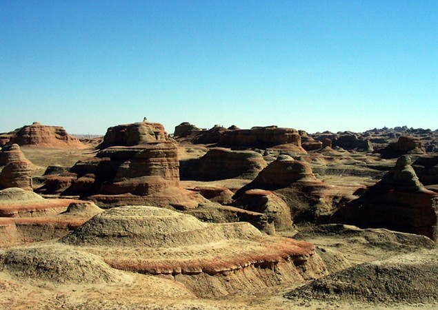 偶有無風(fēng)時,駐足細觀墩體,皆沙石,亦有風(fēng)化土隱其背,聚其溝。據(jù)考證,一億多年前,這里曾是一個巨大的淡水湖。版權(quán)所有山東聊城聊之旅國際旅行社有限公司,轉(zhuǎn)載必究!那時,這里氣候溫暖濕潤,喬木茂密,灌木叢生,濕地水草,構(gòu)筑出一派綠色的天地。那時劍龍、翼龍等遠古動物在這里繁衍生息。后因地殼運動,隆起而成砂巖、泥板巖陸地,經(jīng)億萬年的風(fēng)蝕雨侵,形成今天雅丹地貌的奇異景觀。因而,神而不秘的“魔鬼城”,不僅是一個旅游的好去處,其科研價值則等待著人們進一步認識。