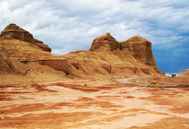 克拉瑪依市北行100公里,在烏爾禾鄉(xiāng)東南三公里,有一處獨特的風(fēng)蝕地貌,定名為風(fēng)城,人們習(xí)慣稱它為 “魔鬼城”。“魔鬼城”是一片雅丹地貌,面積10平方公里,地面海拔350米左右。“魔鬼城”是一片雅丹地貌,面積10平方公里,地面海拔350米左右。雅丹,維吾爾語“雅爾丹”的轉(zhuǎn)音,原來是維吾爾族對沙土風(fēng)蝕地貌的叫法,意思是“陡壁的小丘”,后演變?yōu)楦珊档貐^(qū)風(fēng)蝕地貌的地理名詞。
