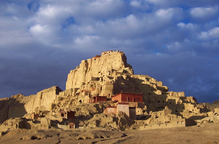 在距今約1100年前,同樣的余暉中,佇立著的卻是強盛一時的象雄王國和古格王國的宮殿和寺院。從現(xiàn)存的殘頹遺址可以想象得到當時場面的巨大,遠非眼前這般光景可比。