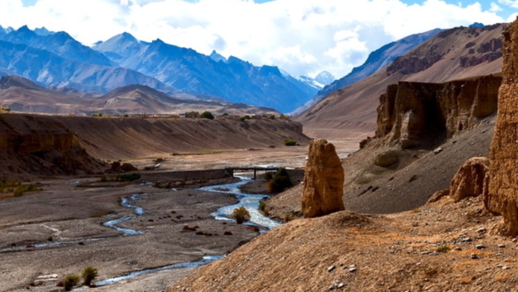 孔雀河谷地帶景色優(yōu)美,四周雪峰峻峭,雪峰下是風(fēng)化的礫石和黃沙形成的堆積層,起伏有序,溝壑縱橫。來(lái)自孟加拉灣的海洋季風(fēng)越過喜馬拉雅山吹到這里,形成了青藏高原難得一見的濕潤(rùn)氣候,大片的綠洲似翡翠般鑲嵌在孔雀河谷,錯(cuò)落有序的村莊,繚繞的炊煙,趕著牛羊的牧童和轉(zhuǎn)經(jīng)的老人,使人仿佛到了一個(gè)世外桃源,就像傳說(shuō)中的香格里拉。