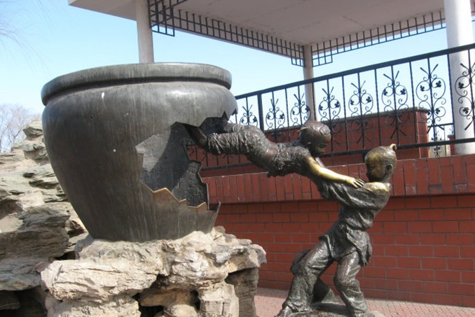 標(biāo)題:《司馬光砸缸》 材質(zhì):青銅 高度:1.6米 作者:張大生