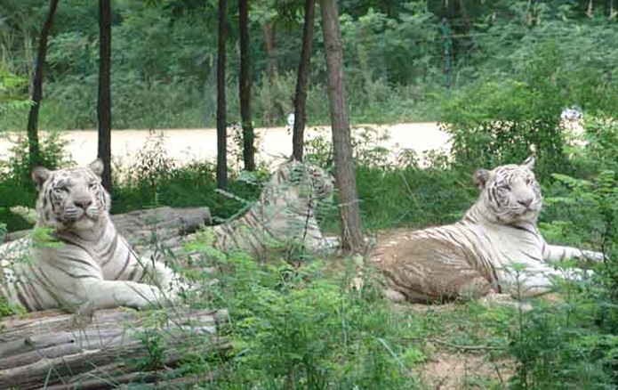 園內棲息著獅、虎、熊等各類動物100多種4000多 頭(只)。