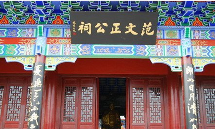 范化祠左右分立兩碑,左書“先憂”,右書“后樂”,門的兩邊對聯是“宰相出山中,劃粥埋金,二十年長白棲身,看齊右鄉賢,依然是蘇州譜系;秀才任天下,先憂后樂,三百載翰卿著績,問濟南名士,有誰繼江左風流。”對范仲淹一生的經歷和業績作了全面的概括和評價。