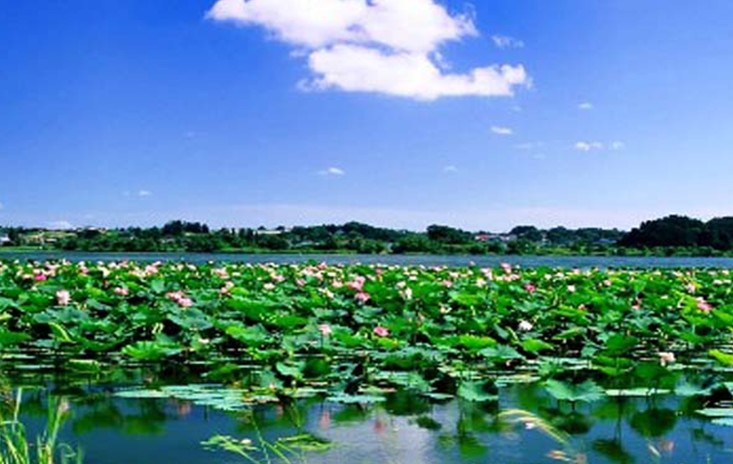 微山湖是中國著名的六大淡水湖泊之一,風(fēng)光秀麗,美麗而又神秘,自然而又灑脫,山、島、森林、湖面、漁船、蘆葦蕩、荷花池,還有那醉人的落日夕陽、裊裊炊煙等,和諧統(tǒng)一地結(jié)合起來,構(gòu)成了微山湖特有的美麗畫面,是個天然的大公園。這些風(fēng)物中,尤以有“花中仙子”之稱的荷花最為耀眼,其美麗的身姿,和出淤泥而不染的性格,又全身都是寶,人們甚是喜愛。其洋洋灑灑地鋪到湖面上,有的多達幾拾萬畝,蔚為壯觀,所以又有人把這里叫作“中國荷都”。