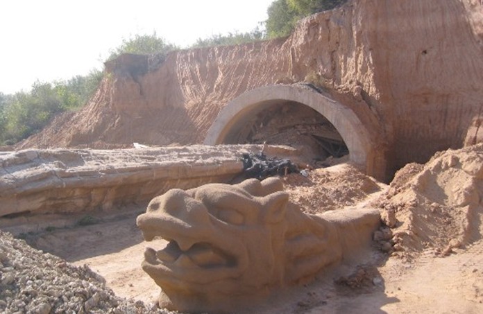 其次,出土古石龍的山坡古時候就叫臥龍坡。而且周邊還有許多以龍命名的建筑。此外,當?shù)孛耖g自古都流傳著許多關于龍的故事。古石龍都朝向東北方向,而在古石龍東北方向1.5公里遠的地方就是著名的趙王陵遺址。趙王陵是我國戰(zhàn)國時期七雄之一趙國的帝王陵寢,石龍極可能為趙王陵的“鎮(zhèn)陵之物”。
