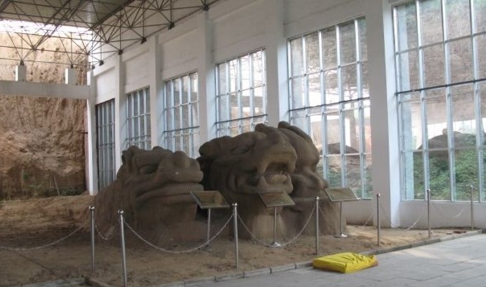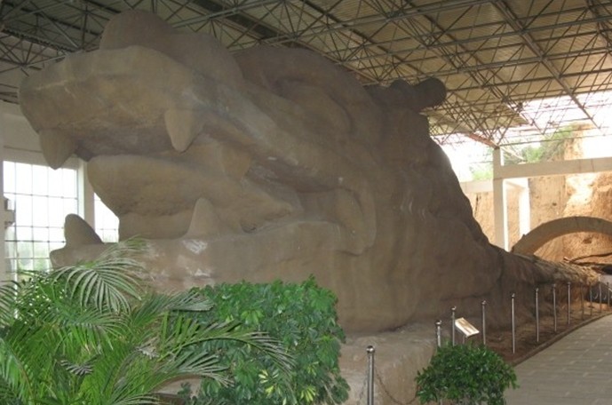 專門用來保護古石龍的龍文化保護館于今年夏天剛剛建成,該館長50米,寬40米,高8米,依臥龍崗而建,剛好可以把發(fā)掘出來的這十條古石龍保護起來。