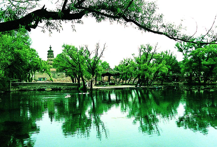 位于淶源縣城南側,河溪縱橫,白楊綠地。可戲水、摸魚、篝火、燒烤、休閑、納涼極理想。拒馬河的源頭。泉水從淶源縣城涌出地面,涌水量3m3/秒,是中國北方最大的泉。源頭一側的"興文塔"始建于唐天寶三年(744年),是世界上唯一的斜剎塔,由唐代鑄錢作坊捐資建造。