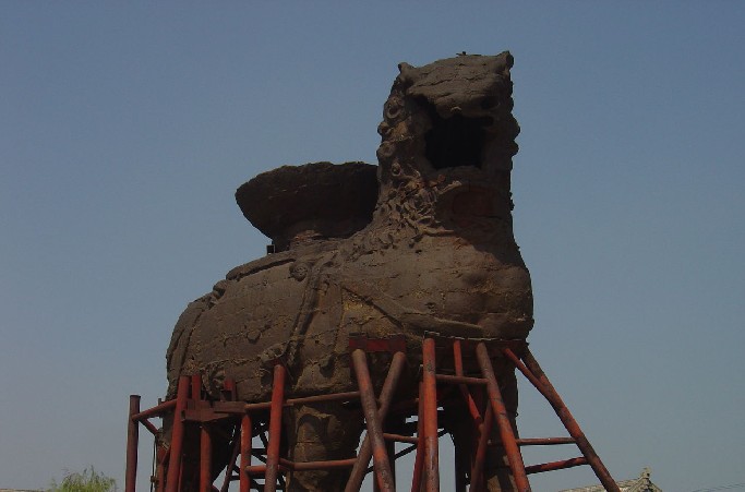 滄州鐵獅子位于滄州市政府駐地東南偏北16.5公里。坐落在東關村西0.5公里處。鐵獅身高5.78米,長5.34米,寬3.17米,體重約50噸。背負巨盆相傳是文殊菩薩蓮坐,獅身向南,頭向西南,兩左腳在前,兩右腳再后,呈前進狀,姿態雄偉,昂首闊步,徐徐如生鐵獅是我國大型的驚巧鑄鐵工藝。也是我國著名發源的古跡。距今已有一千多年的歷史,它充分的顯示出我國古代勞動人民的智慧和藝術才華。解放后鐵獅子受到了黨和政府的重視與保護,國務院首先把它列為全國第一批重點文物保護單位,并且對它進行各種的修繕。