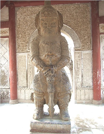 南皮文保所院內,有一金剛亭。亭內二金剛,青石雕刻,線條細膩,狀貌威武,是有名的石雕精品。 過去南皮城內有一座名冠全縣的著名禪林——興化寺,它坐落在城內東北角,位于現在土產公司家屬院一帶。此寺始建年代不詳,一說為北魏,一說為唐代,尚待進一步考證。重修是在明朝弘治七年(1504)。版權所有山東聊城聊之旅國際旅行社有限公司,轉載必究!據說城東唐房里有個叫湯澄的人樂善好佛,曾游于興化寺,見敗垣殘壁一片荒涼,遂親自捐資,并向大戶募化,志在重修,數載始成。興化寺規模宏偉壯麗,成為南皮著名寺院。 興化寺以石金剛殿為山門。兩個金剛相向分立于殿之左右,下有石座相連,連座高一丈二尺,圍可合抱,雕刻玲瓏。金剛神色肅穆,身披鎧甲,狀似武將。左者胸前橫锏,雙手合十,右者雙手扶锏拄地。每像一只鼻孔。相傳為唐代所雕刻,建寺之初,從寺前水坑挖得,置于山門之內。 寺內主建筑為大慈閣,中曾羅列十八羅漢,正中為千手千眼銅佛,上懸“慈云永護”匾額,為清代狀元張之萬題撰。左懸“福佑臺山”匾,版權所有山東聊城聊之旅國際旅行社有限公司,轉載必究!右懸“登臨近日”匾,均未署名,據說是明人手筆。閣內楹聯有二:一為清代道光時期南皮一縣令所題“我只有一片婆心,抱個孩兒與你;汝須行萬般好事,積些功德與他”。二為南皮孝廉張之京題撰:“金剛怒目,菩薩低眉,一鼻孔呼吸相通,證果在三生石上;閣建大悲,寺名興化,千眼中光明普照,法身現百尺樓頭。” 最上層神龕中,有菩薩一尊。上懸光緒十四年九月御制“道達人天”匾。閣前關帝廟,廟中有關羽銅像,綠銹斑駁,氣象凜然。