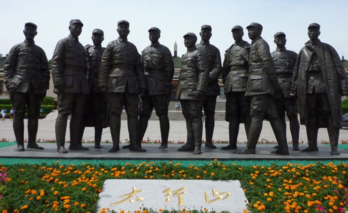 八路軍將領組雕——“太行山”位于八路軍太行紀念館內中軸線上,是2005年八路軍