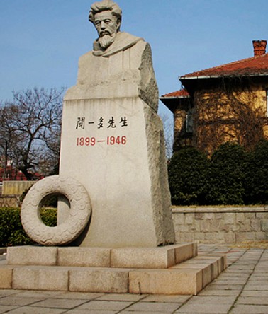 解放后,聞一多先生的故居劃在原青島大學(現青島海洋大學)校園內,并命名為“一多樓”。1978年,海洋大學將“一多樓”辟為“聞一多故居展室”,展室陳列有聞一多先生的著作及其它一些紀念物。展室匾額“一多樓”,由中國書法協會主席舒同題寫。小樓前建有一花壇,花壇正中豎立有聞一多先生半身大理石塑像,座上刻有聞一多先生的學生、著名詩人臧克家撰寫的碑文。