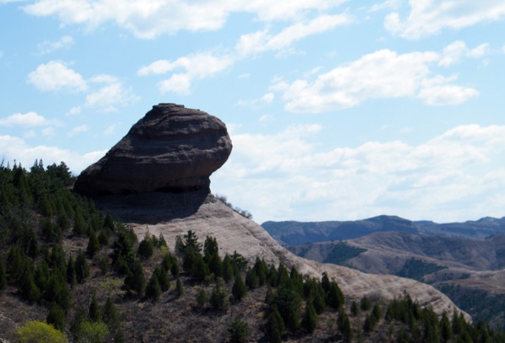 在承德市武烈河東岸馨錘峰的東南端。隔一條山谷,有一巨大的巖石,踞于群峰之巔,似一青蛙欲躍蒼穹,故名。是承德十大自然勝景之一。 蛤蟆石,長約二十米,高四十多米。蛤蟆頭探出懸崖,腹下有南北兩個空洞,洞室南北相連,東西貫通,南洞最大,高一米八,寬八米,縱深九米。夏天游覽至此,可納涼消暑。蛤蟆脊背由承德礫巖中的卵礫石組成。顆顆卵石,光滑細膩,構成了凹凸別致的紋體。其背地勢比較平坦,大小可容納數十人。 除此之外,另外兩個蛤蟆石,一個蹲在蛋糕山東側石棚下邊的平臺上,長不過三米,張口昂首,背部凹凸的卵石為鈣質所覆蓋,光滑而明亮;另一個在雙塔山東面雕溝溝口的西山崗上,坐東朝西,正對雙塔。它體態(tài)渾圓,頭頂平直略上翹,張著向上傾斜的大嘴。內可容十余人蹲坐。因此又被稱作蛤蟆嘴。 三塊蛤蟆石的成因各自不同。
