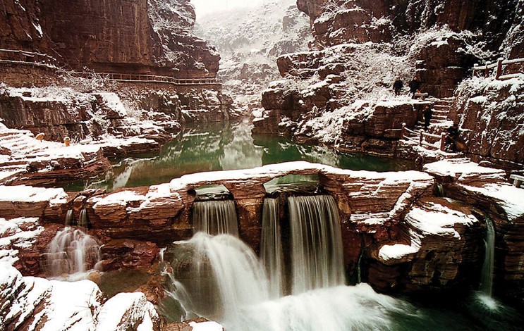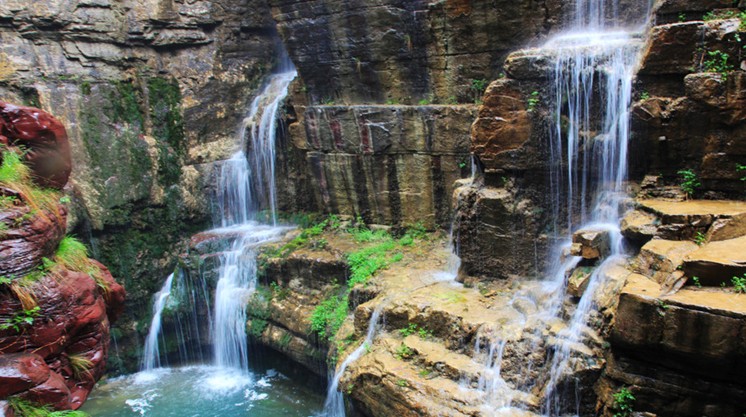 云臺山當地人稱小泰山,傳說山頂有泰山奶奶的行宮,所以山上一些廟宇、景點都是仿泰山修筑和命名。中天門是小憩的好地方,在此南眺,夾谷峪一覽無余,盡收眼底,兩面山勢磅礴,郁郁蔥蔥。一到春天,山上的梨花、桃花、柿子花、山楂花及各種花草相繼開放,姹紫嫣紅。特別是清明前后,漫山盛開一樹樹潔白的梨花,似皚皚白雪,覆蓋山坡;間或幾枝桃花吐艷,如殷殷胭脂點綴其間,景色十分迷人。秋到云臺山,滿山的紅葉,如紅星閃爍,點綴著蒼松翠柏。山頂遠望,泰萊平原,汶河西流,一覽無余。版權所有山東聊城聊之旅國際旅行社有限公司,轉載必究!百丈崖下的鵓鴿樓水庫,那一汪碧水,似一塊綠色的寶石,瑩瑩閃爍。兩兩情人,劃船漫游;垂釣老翁,蹲坐四周,更增添了云臺山的風韻。