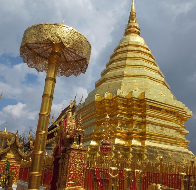 清邁古城門附近可見眾多舊佛寺和各色紀念碑。最接近市區而值得參觀之處是雄踞山峰的雙龍寺(WatPhrathatDoiSuthep)和泰皇夏日行宮(PhupingPalace)。清邁博物館也值得一覽,館內珍藏著大量文物,可追溯到孟萊王、素可泰時代