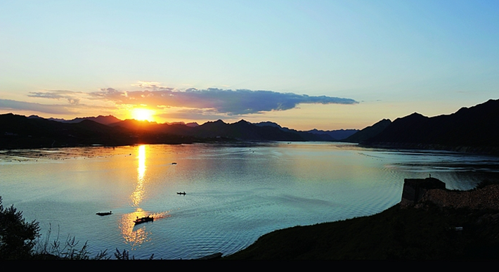 塞外蟠龍湖旅游風(fēng)景區(qū)(潘家口水庫(kù))位于承德市寬城滿族自治縣西部,距寬城縣城25公里,距承德市區(qū)135公里。她是一個(gè)由10萬(wàn)畝水域,150平方公里的生態(tài)山場(chǎng)和明代長(zhǎng)城景觀組成的風(fēng)景區(qū)。是因國(guó)家重點(diǎn)“引灤入津”水利樞紐工程--潘家口水庫(kù)的建成蓄水而形成的人工湖。因空中鳥瞰湖面恰似一條巨龍婉蜒游動(dòng)而得名。塞外蟠龍湖是鑲嵌在燕山深處、長(zhǎng)城腳下的一顆燦爛明珠,也是承秦朝陽(yáng)旅游線上的一段“黃金水道”,它集人文景觀與自然景觀于一體。來(lái)到景區(qū),自湖邊入口登船,緩緩前行,好一派江南水鄉(xiāng)風(fēng)光。小蓬萊島有如仙境,若隱若現(xiàn);蛤蟆石、烏龜島時(shí)起時(shí)伏;一線天、蟠龍洞、十里畫廊鬼斧神工,如在畫中游。山一重,水一重,柳暗又花明。版權(quán)所有山東聊城聊之旅國(guó)際旅行社有限公司,轉(zhuǎn)載必究!聞名天下的潘家口水上長(zhǎng)城和喜峰口水下長(zhǎng)城雄偉而壯觀。古老的灤河水擁關(guān)漫隘,紫塞青峰倒映水中,湖光山色交相輝映。喜峰口水下長(zhǎng)城是景區(qū)的精典之作,長(zhǎng)城主體部分淹沒水下,僅有局部關(guān)城露出水面,淹沒水下的部分墻體隱約可見。長(zhǎng)城沿關(guān)城東西兩側(cè)出水往山脊延伸,這在長(zhǎng)城人文景觀中可謂獨(dú)具特色。這里有歷代詩(shī)文碑林,有喜峰口來(lái)歷的動(dòng)人傳說(shuō),有姜文執(zhí)導(dǎo)并主演的電影《鬼子來(lái)了》外景基地。原汁原味的長(zhǎng)城風(fēng)貌,使這里成為一個(gè)開放式的長(zhǎng)城博物館。這里的長(zhǎng)城使您每到一處都能觸摸到千年歷史,遙想當(dāng)年金戈鐵馬,鼙鼓滄桑,低吟一首《飲馬長(zhǎng)城窟行》;目光搜尋著城墻的道道彈痕,耳畔響起抗日炮火的轟鳴,一曲雄壯的《大刀進(jìn)行曲》引您穿越時(shí)空,領(lǐng)略當(dāng)年長(zhǎng)城抗戰(zhàn)大刀隊(duì)勇士們的風(fēng)采,民族精神,中華之魂令人振奮不已。