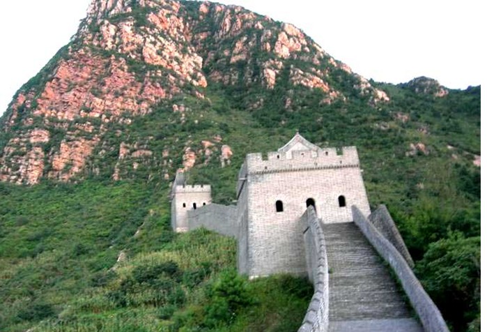 (四)內地罕見的古長城:有詩曰:“不到長城非好漢”。不少人因為沒有機會一睹北京城外古長城的雄偉風采而遺憾。但太平寨為你提供了一個游覽古長城雛形的機會。太平寨的古長城修在與太平山相毗鄰的群山頂部,全部用石料砌成,高約2米,寬約1.5米,連綿10余華里,其氣勢雄偉壯觀,在內地實屬罕見。至于太平寨的古長城始建于何年,為何而建,特別是有幾處古長城修建在懸崖峭壁處,版權所有山東聊城聊之旅國際旅行社有限公司,轉載必究!那重量過千斤的大石塊,這在當時是如何運上山的,又是如何建的,目前尚無證可考。太平寨有多井字形拱券結構敵樓六座、墩臺一座、登城便門一座。登城便道有一個小甕城,甕城內周圍鐫修長城贊助碑,碑上鐫刻捐資贊助修復長城的單位、集體和個人名單。甕城前廣場兩側土崗上,塑有高8.5米的明末戍邊修城名將、薊州總兵戚繼光花崗巖塑像,身著戎裝,氣宇軒昂。甕城西面三岔墻,有一段向外延伸30多米,設一敵臺,稱哨樓。三岔墻水洞處,城墻突然下伏,繼而又隨山勢插入云霄。長城最西端有一方形石樓,名寡婦樓。傳明隆慶年間戚繼光曾征調河南軍士繕修長城樓臺,時有 十二名婦女結伴尋夫捐資修建了這座敵樓,后人傳稱為“寡婦樓”。樓兩層,高13米,四大磚柱將樓隔成四個拱形大廳,四面有拱券箭窗。樓上層建有長方形小屋,西端裝飾龍頭,四面有檐角蹲伏陶制麟、鳳、獅等動物模型,四周筑雉堞垛口。長城內側有一墻圍子,名“養馬閣”,為古代養馬處。