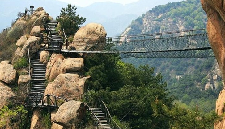 天上人家景區位于齊魯大峽谷旅游區中部的群山環抱之中,區內自然旅游資源豐富,主要有“三谷兩湖一天村”,“三谷”即九天大峽谷、王石門大峽谷、槐花谷,“兩湖”即九天湖、九龍湖,“天村”即王石門村。版權所有山東聊城聊之旅國際旅行社有限公司,轉載必究! 其中具有典型魯中山區風格的王石門民俗村海拔851米,是山東省海拔最高的村莊,因其周圍群山多有云霧繚繞,素有“天上人家”之稱。整個“天上人家”景區以原始自然風光和田園民俗旅游為特色,游覽時節以春夏秋最佳。該景區最大日接待量可達4000多人,建有2萬平方米的大型停車場一處。區內有12家別具鄉村特色的飯店,可同時接納600人就餐,游客可品嘗到散養于山間、村中的柴雞和柴雞蛋、山野菜等綠色食品。