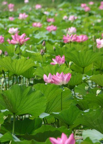 這里,小片荷花略而不計,最壯觀的有3處,微山島西至愛湖這一片荷花,就足有十萬畝,留莊、南陽兩鎮也各有數萬畝。荷花純系野生,有紅、白兩色。紅的嫣然如霞,白的清麗典雅,面積如此之大的荷花蕩,非但山東省罕見,乃至全國亦不多見,這確是微山湖的一大奇觀。這與被盛贊為“有三秋桂子,十里荷花”的杭州西湖相比,亦有爭勝斗強之概。難怪人們要到這里觀賞過荷花才肯離去。
