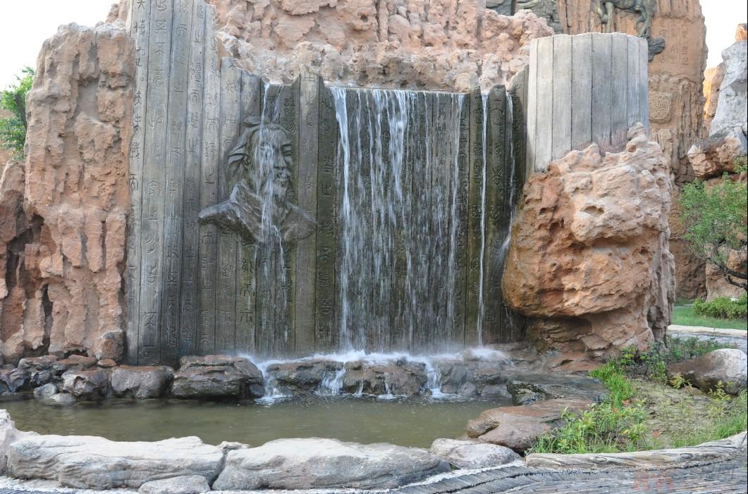 游客穿過春秋版圖廣場來到儒家區(qū),一座23.8米高的孔子像依山而建,形態(tài)逼真。山上結(jié)合石雕與文字表述孔子一生的經(jīng)歷。地面上則采用古書竹卷的形式進行布局,刻論語于其上,72賢人弟子坐落于此,再現(xiàn)孔子“杏林授徒”的春風和煦景象。