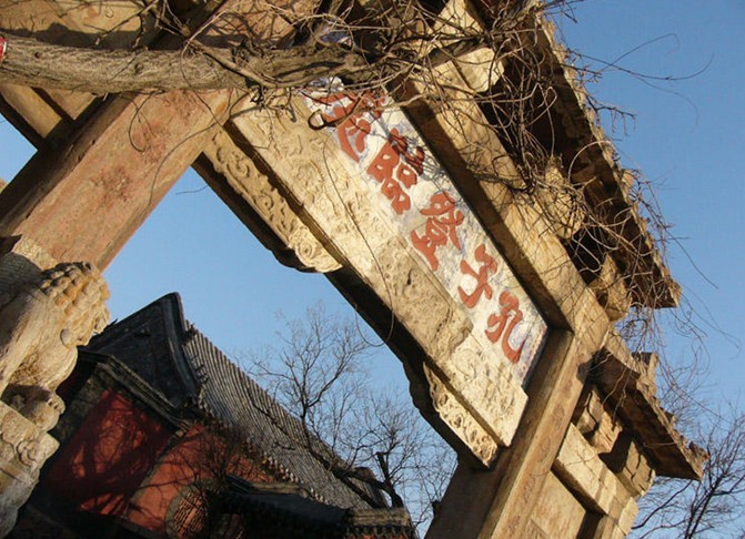 此坊聯在一天門坊稍北孔子登臨處坊柱上,刻于明嘉靖三十九年(1560),“文革”中已毀。坊柱高280厘米,字徑20厘米,楷書。