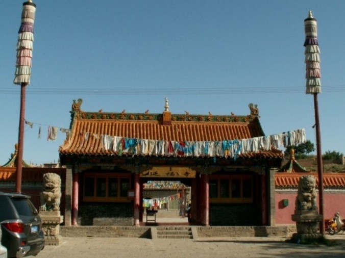 延福寺坐落在巴彥浩特鎮王府街北側,系原阿拉善旗八大寺之一,是內蒙古自治區重點保護的古式建筑之一。延福寺,俗稱“王爺廟”,藏語名為“格吉林”。該寺為阿拉善三大寺院系統和八大寺之一。該寺從乾隆七年(1742年)開始修建大殿,以后陸續完成周圍的建筑。乾隆二十五年(1760年),清帝為該寺賜名,并賜用滿、藏、蒙、漢四種文字書寫的金字匾。該寺整個建筑群共建有大經堂、菩薩殿、四大天王殿、轉經樓、鐘鼓樓、如來殿、阿拉善神殿、藥師殿、密宗殿等大小殿堂10多座,共200多間,計800多平方米。1919年前后為鼎盛時期,喇嘛達500人,1949年解放時沿有喇嘛200多名。該寺同其它黃教派寺廟一樣,設有神學院,共分四大部,每部有一座專用殿宇。寺內至今保存有乾隆三十三年(1768年)所鑄青銅香爐一個,高2.2米,直徑0.85米。鑄于乾隆五十五年(1790年)的大鐘一個,其鐘聲音洪亮,每擊,整個巴彥浩特鎮余音繚繞經久不絕。目前,她已以古色橫溢的新姿展現在游人面前,成為內蒙古自治區西部最著名的名勝之一。
