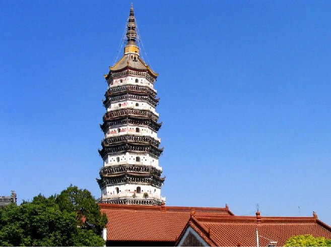 振風塔塔門布局多變,游人登上二層以后往往入而碰壁,不得其門而上,因此人聲笑語不絕,一旦得門而上,則又勃然而悟,其樂無窮。每層檐角發戧,戧下系銅鈴,隨風作響,悠揚遠送。塔的底層供奉一尊5米高的接引佛,二層供彌勒佛,三層供五方佛,四層以上有浮雕佛像600多尊,塔頂為八方體須彌座,上接半圓形覆缽和5個鐵球(佛稱相輪),1個葫蘆寶瓶,用銅軸串在一起構成塔剎。渾厚的塔身襯著造型優美的塔剎,巍然高聳,直入云霄。“塔影橫江”是一幅晴空月夜美麗奇異的圖畫,版權所有山東聊城聊之旅國際旅行社有限公司,轉載必究!被譽為安慶勝景之一。“過了安慶不說塔”、“萬里長江第一塔”和“寶塔王”的美稱,引得歷史上許多文人墨客慕名而來,留下美好詩篇。