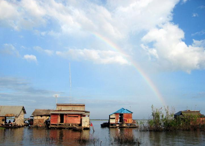 洞里薩湖又名金邊湖,位于柬埔寨境內北部,呈長形位于柬埔寨的心臟地帶,是東南亞最大的淡水湖泊。湖濱平原平坦、廣闊,長500千米、寬110多千米,西北到東南,橫穿柬埔寨,在金邊市與貫穿柬埔寨的湄公河交匯。它像一塊巨大碧綠的翡翠,鑲嵌在柬埔寨大地之上,為高棉民族的發展與繁榮提供了堅實的資源保障,是柬埔寨人民的“生命之湖”。