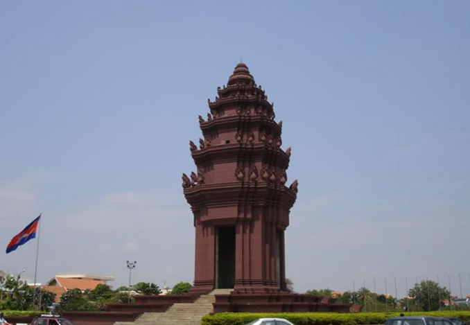 獨(dú)立紀(jì)念碑(Independent Monument)高高地矗立在諾羅敦大道與西哈努克大道交會(huì)的十字路口上。為慶祝脫離法國殖民政權(quán)和紀(jì)念在戰(zhàn)爭中為國犧牲的英勇烈士而建。由柬埔寨著名設(shè)計(jì)師凡?莫尼旺設(shè)計(jì),于1958年動(dòng)工興建,1962年11月落成。整座紀(jì)念碑底座寬36米、高37米。