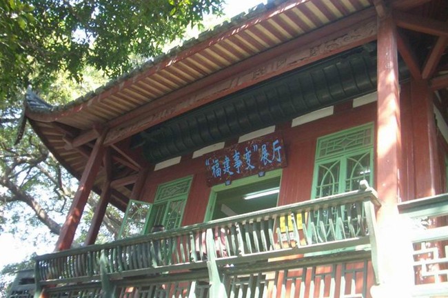在于山白塔寺東,位于榕壽巖上,巖石上有多處題刻。始建于北宋,是白塔寺接待賓客之場所。現(xiàn)存為清道光年間(1821-1850)重建。亭閣式建筑,單開間九脊頂,龍頭翹角,雕梁畫棟,周廊欄桿纖巧,建于高臺(tái)之上。東傍補(bǔ)山,巖石突兀;西有巨榕生自隙,綠蔭覆舍,依山筑垣,將古建筑藝術(shù)與書法藝術(shù)、樹根藝術(shù)融為一體。1933年秋,十九路軍蔡廷鍇、蔣光鼐等將領(lǐng)曾在此召開秘密會(huì)議,發(fā)動(dòng)反蔣“閩變”。