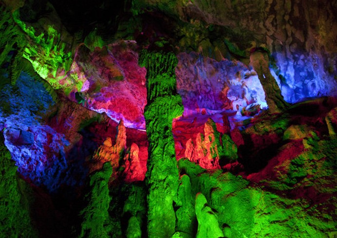 最妙的要數(shù)洞內(nèi)的"四絕"、"三奇"景觀。"四絕"為天溝、天板、天漕,玉螺賬,石鵝管和天外飛瀑。"三絕"為鐵索寒橋、雙井開天、地下長河。此外,"龍?zhí)堵牆?、"群猴朝圣"、"洞中大龍湫"、"九龍壁"、"石葡萄"、"石褶裙"、"石針"、"石筍"、"葫蘆壽星"、"猴子撈月亮"、"八戒照鏡子"等景點,以及王喬煉丹留下的勝跡,惟妙惟肖,令人目不暇接,嘆為觀止。