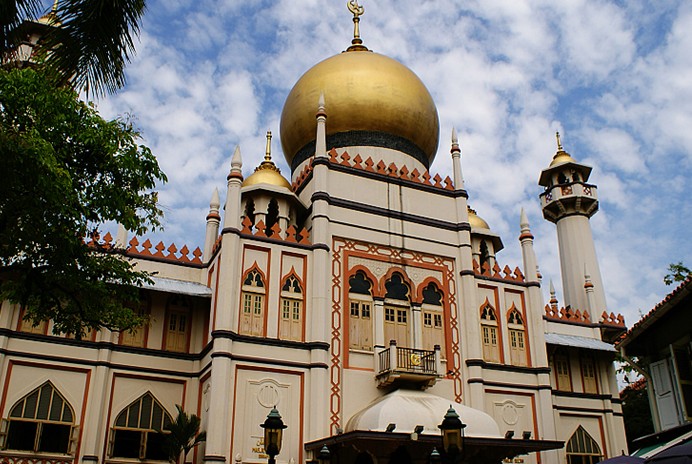 這座新加坡最大也最壯觀的宗教建筑的主祈禱堂可容納多達(dá)五千名教徒同時進(jìn)行禮拜。回教堂擁有兩座金黃色的大圓頂,此外,有4個對稱的宣禮塔,以及許多小亭和小塔。 千萬別忘了仔細(xì)看看穹頂?shù)鬃渲苓厙@了一圈由信徒獻(xiàn)上的玻璃瓶底,散發(fā)著耀目的光芒,也為這里增添了更多神圣的氣息。