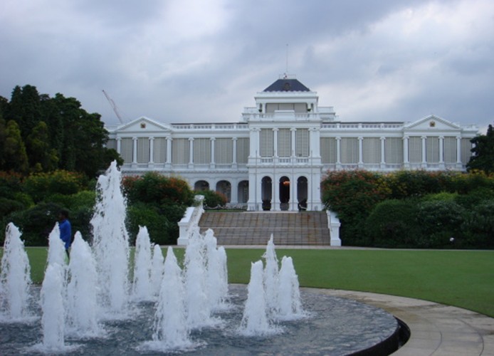 那是一個座落在新加坡著名購物中心烏節路(Orchard Road)頭的歐式公園,緊鄰著新加坡人最喜歡去的Plaza Singapura購物中心。所以,一般很難想象那里和喧鬧的商業中心緊挨著,竟然是新加坡最高元首和政府首腦的辦公地點。外交禮儀如接見胡錦濤主席和英國女皇的儀式都是在總統府里舉行的,那里就像是新加坡的中南海。據說歷任新加坡總統都是在那里面居住,但是現任總統納丹卻比較例外的住在市區外的一所小房子里。