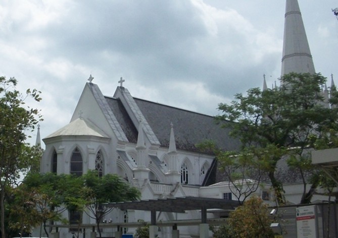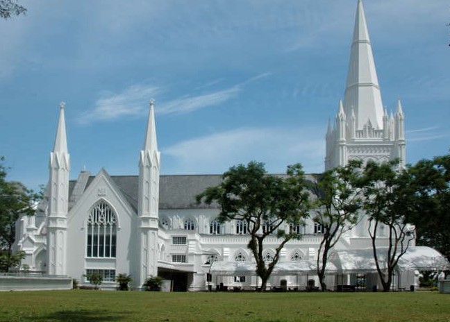 一座潔白的歌特式教堂,高高的尖頂直插藍天。像一位高大而圣潔的神的使者,他默默佇立在喧囂的市中心,卻讓每一個見到他的人,心中都會不由自主地生起向往和敬畏。這就是新加坡最著名的一座教堂——圣安德烈教堂。 潔白亮麗的外墻是圣安德烈教堂最傲人的特點之一。經歷了一百多年的滄桑卻仍舊那么光彩照人,“就是青春無瑕”,傳說肌膚勝雪的圣安德烈教堂,據說是將貝殼磨成灰,加入蛋白和糖調成糊狀,再放入浸泡到柔軟的椰子殼,就制成了一種實用又美觀的石膏。將其涂在建筑的表面,不容易出現裂痕,而且潔白有光澤。