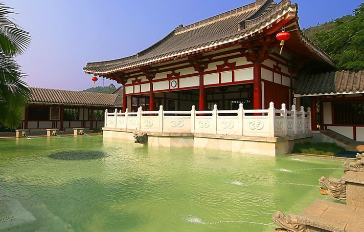 九龍池位于玉溪市州城西北10公里奇黎山下的九龍池,又名奇黎溪, 是當地著名的佳景勝地之一。位于玉溪市州城西北10公里奇黎山下的九龍池,又名奇黎溪, 是當地著名的佳景勝地之一。 據《重修九龍池碑記》載, 寺廟初創于清朝之前, 幾經擴建,到公元1729年(雍正七年),又“新作石橋,長虹臥波,幾于騰空直上。繼修大寺閣,燃然一新,儼若普陀”。