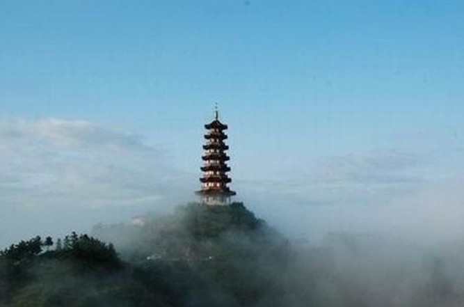 觀音峰 因其山腰有一巨石極似送子觀音而得名,是塔山游覽區(qū)內(nèi)的一處自然景觀,位于塔山主峰北側(cè),與主峰遙相呼應(yīng)。其山體雖不高,但山上奇松怪石,星羅棋布,錯(cuò)落有致,別有一番景色。峰頂建有一處觀光亭,名為“觀音亭”,在亭內(nèi)憑欄遠(yuǎn)眺,可盡覽市區(qū)山光水色。