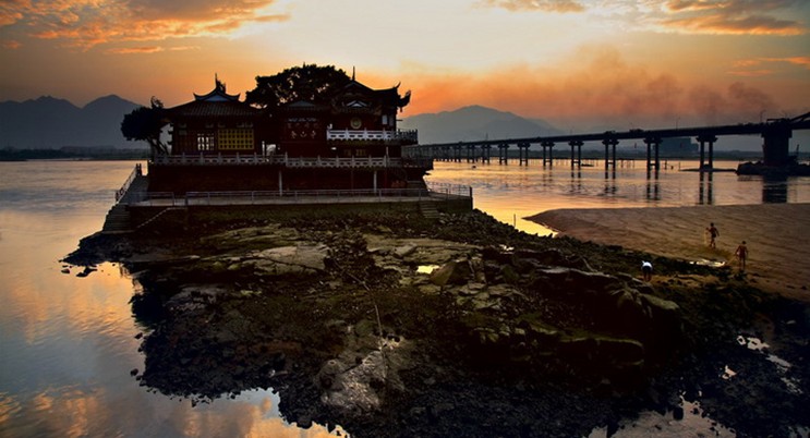 福州金山寺福州金山寺位于福州市西郊洪塘村附近烏龍江上,建于宋代,是福州唯一的水中寺,金山寺原是江心的小石阜,因為它的形狀象石印浮于水面,早在宋代當?shù)厝司驮谶@石埠上建了一座寺廟,因為很像鎮(zhèn)江的金山寺,故取名小金山寺。據(jù)《洪塘志》記載:“金山江心矗起,形象印浮水面,似江南鎮(zhèn)江,故曰小金山。有塔七級,故曰金山塔寺。”