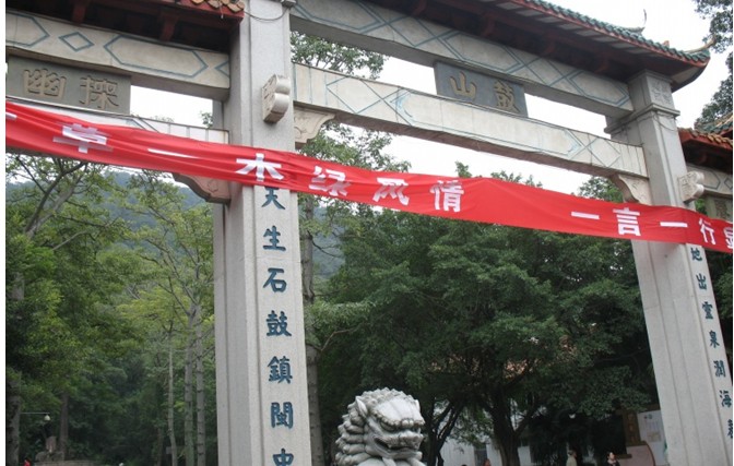 古時登鼓山之道。從山麓廨院登上2000多級臺階,經(jīng)過“七亭七里路”(即東際亭、石門亭、承云亭、半山亭、茶亭、松關(guān)亭、更衣亭)就可到達(dá)涌泉寺山門。