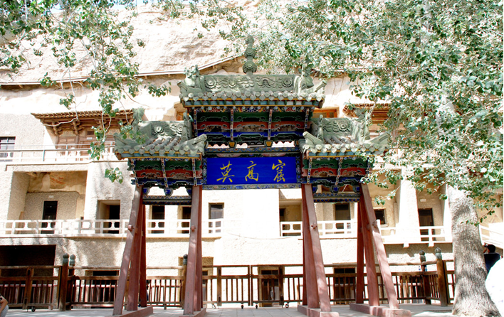 莫高窟(Dunhuang Caves)俗稱千佛洞,被譽為20世紀最有價值的文化發現,坐落在河西走廊西端的敦煌,以精美的壁畫和塑像聞名于世。它始建于十六國的前秦時期,歷經十六國、北朝、隋、唐、五代、西夏、元等歷代的興建,形成巨大的規模,現有洞窟735個,壁畫4.5萬平方米、泥質彩塑2415尊,是世界上現存規模最大、內容最豐富的佛教藝術圣地。近代發現的藏經洞,內有5萬多件古代文物,由此衍生專門研究藏經洞典籍和敦煌藝術的學科——敦煌學。1961年,被公布為第一批全國重點文物保護單位之一。1987年,被列為世界文化遺產。