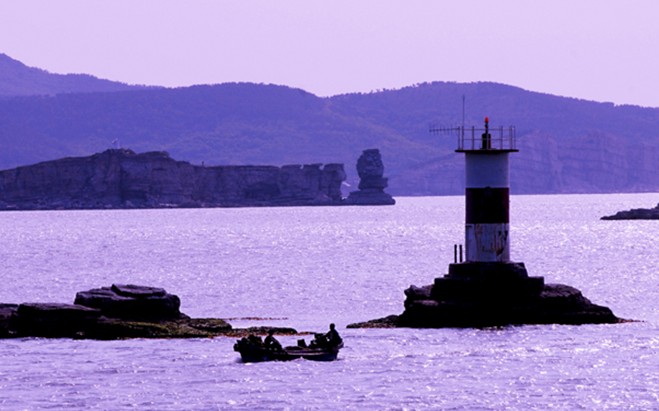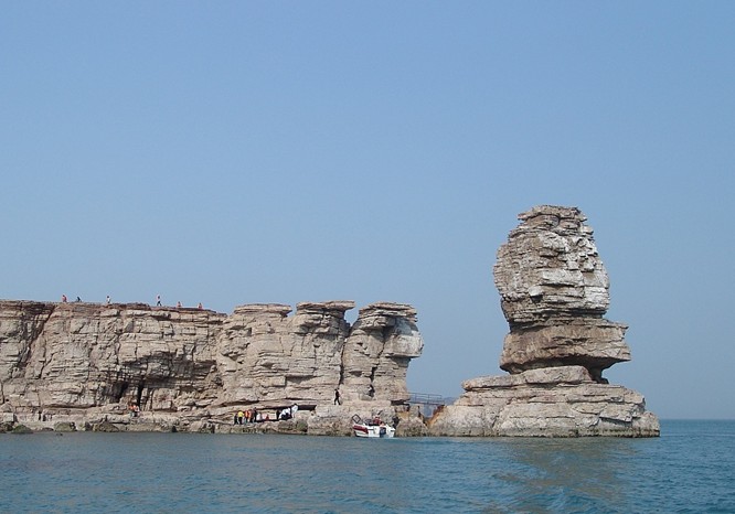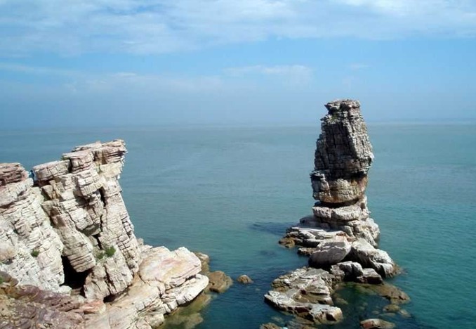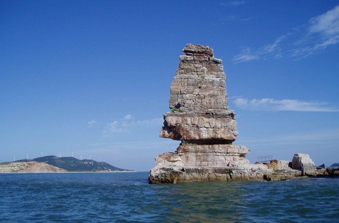 寶塔礁,因礁石似寶塔而得名,位于廟島西北處的犁具把島,高約21米,直徑約5米,其狀巍然,寶塔礁無論從哪個角度觀賞,都像一座挺立的巨塔,變換不同的位置,會領略出不同的天工神韻,讓人覺得處處皆奇。