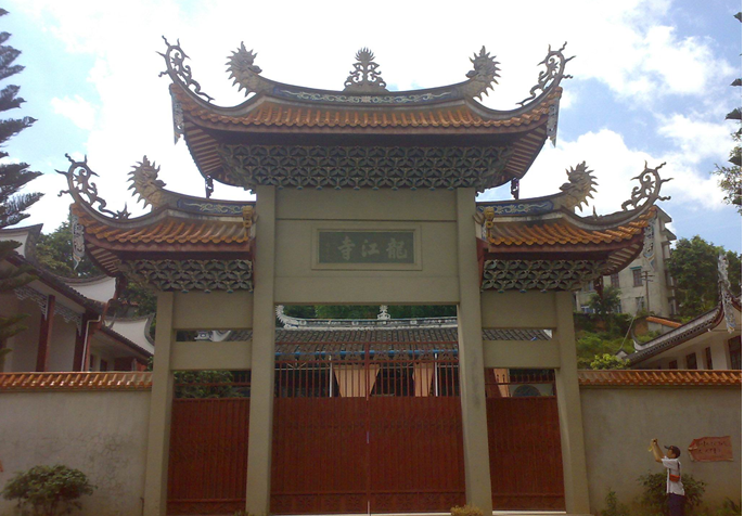 明萬歷二十三年(1595年),“借借室”改名借借祠、龍江祠。信徒奉林龍江先生為神,塑像供祀,香火甚旺,林龍江家鄉莆田信徒亦多有來往,龍江祠遂成為三一教的活動場所。“文革”時龍江祠被改為蘑菇場。1976年廣維法師改龍江祠正名為龍江寺,寺里保持供祀林龍江先生的傳統。1998年龍江寺遭洪水襲擊,毀損嚴重,為避洪災,監院釋通善法師竭盡全力,引導僧人與善眾投入災后寺院的重建,諸殿均建在原址拔高后的臺地上,主建筑有大雄寶殿、三一教主殿等,殿宇更加寬敞,精致高雅。“山不在高,有仙則名;水不在深,有龍則靈”龍江寺正對閩江南港烏龍江的起始處,放眼眺望,江水粼粼;遠山如黛;澄江似練;盡收眼底。寺周遭幽篁茂竹,綠樹成陰,風景十分幽雅。如今,祈福感恩者,治心問病者,慕名而至者絡繹不絕,更為古剎龍江寺增添了幾分神秘色彩。