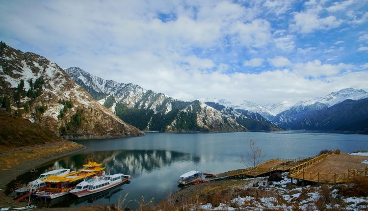 天池東南面就是雄偉的博格達(dá)主峰(蒙古語“博格達(dá)”,意為靈山、圣山)海拔達(dá)5445米。主峰左右又有兩峰相連。抬頭遠(yuǎn)眺,三峰并起,突兀插云,狀如筆架。峰頂?shù)谋ǚe雪,閃爍著皚皚銀光,與天池澄碧的湖水相映成趣,版權(quán)所有山東聊城聊之旅國際旅行社有限公司,轉(zhuǎn)載必究!構(gòu)成了高山平湖綽約多姿的自然景觀。