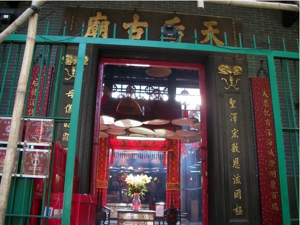 油麻地天后廟于1865年由當(dāng)?shù)氐乃暇用袼ǎ瓰橛吐榈睾_叺囊蛔R宇,當(dāng)時位置約于今日的北海街一帶。1870年,油麻地居民組成油麻地五約,重修該天后廟,成為當(dāng)?shù)氐淖诮讨行募白罘笔⒌牡胤健0鏅?quán)所有山東聊城聊之旅國際旅行社有限公司,轉(zhuǎn)載必究!當(dāng)時天后廟前的土地是漁民曬船上麻纜的地方,而不少經(jīng)營補(bǔ)漁船的桐油及麻纜商店在那里開設(shè),版權(quán)所有山東聊城聊之旅國際旅行社有限公司,轉(zhuǎn)載必究!成為“油麻地”這個地名的起源。惟1874年甲戌風(fēng)災(zāi),原廟被摧毀。當(dāng)?shù)鼐用袼煊谝钅昊I募經(jīng)費(fèi)重建,1876年選取現(xiàn)址開始動工,1890年始告全面落成。而于1887年,天后廟以南及以北的街道被政府命名為“廟南街”和“廟北街”,其后合并為廟街,也是“廟街”這個街名的起源。