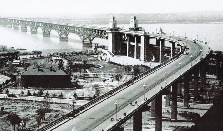 1967年8月15日大橋合龍。時(shí)為南京軍區(qū)司令員的許世友,曾調(diào)來約百輛坦克同時(shí)開過橋面,以檢驗(yàn)大橋質(zhì)量。