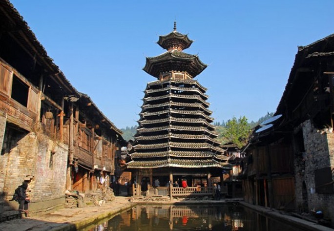 鼓樓頂層上安放在康熙南巡“戒碑”兩邊的一對龍鳳亭,相映成輝,古樸典雅,供游人觀賞。龍鳳亭高4米、圓3.5米,外觀呈塔形。亭為六角七級二層萊結構,外鍍金鉑,金光熠熠。龍鳳亭各級都有極精細雕刻的人物或植物、動物畫。從下至上,四級為人物,皆為武士出征,三國故事人物等;三級為花鳥,有葵花、天竹、青松、芭蕉、萬年青等?;B中還有虎豹、蛇蟲與之為伍;二層隔離刻有六大騎士,六根亭支架上,鳳上龍下,六龍抱柱,六鳳呈祥;亭子上部由飛鶴、荷花蓋頂。整個亭子,呈現出一幅幅優美圖畫,造型緊湊協調,生動精美,其雕刻工藝極為精湛,為世人所稱贊,具有極高的觀賞價值。