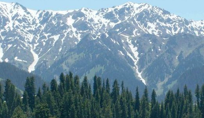 果子溝全長(zhǎng)28公里,沿著烏─伊公路的大致走向,就是新疆古絲綢之路的北道。松樹頭,是果子溝的絕頂之處,北下直達(dá)賽里木湖畔,南下直入果子溝峽谷。賽里木湖,亦稱三臺(tái)海子,與果子溝唇齒相依,亦為新疆名勝之一。由松樹頭南下二臺(tái)林場(chǎng),山路盤旋崎嶇,一落幽谷,是果子溝的險(xiǎn)峻之處。落谷傍山,有一高山瀑布凌 空奔瀉而下,狀如白練懸空,壯觀異常。